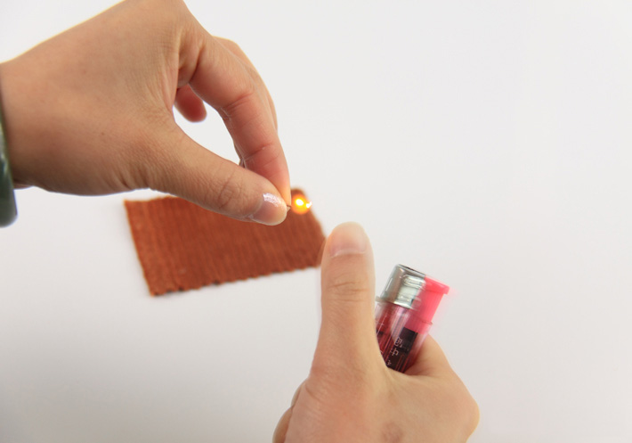 棉纱靠近火焰,不会熔化也不回缩!