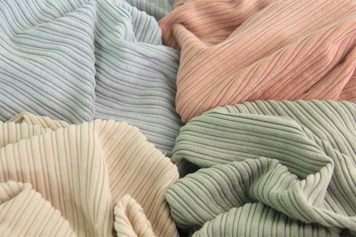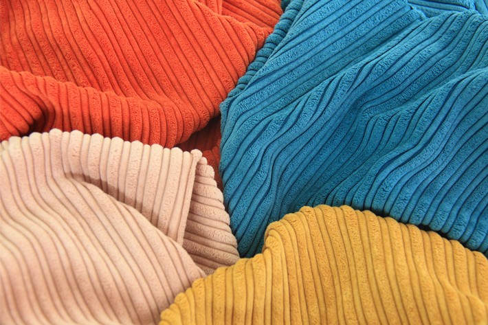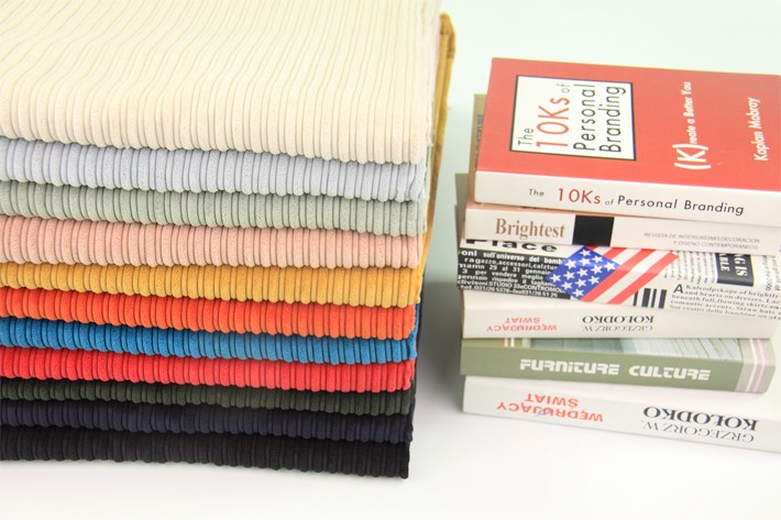 2.54CM里面4条半,叫4.5条灯芯绒,我司生产的灯芯绒面料,均采用环保染料染色,可通过环保检测。丰富的生产经验,让我们的灯芯绒产品,条绒饱满,手感柔软而不影响撕裂牢度!