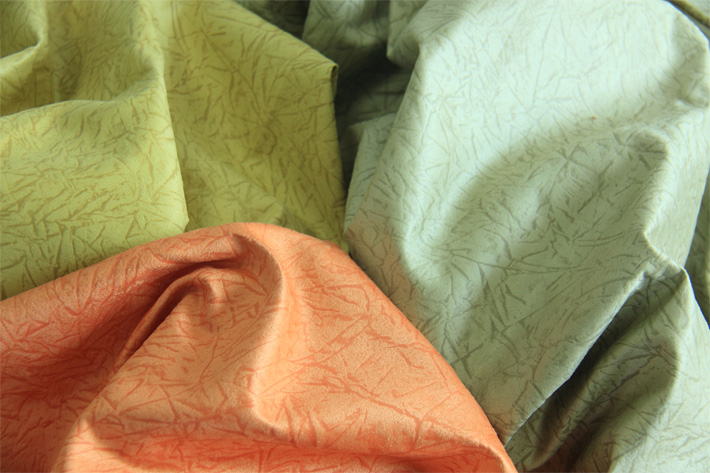 压胶是一种烫金加工工艺,利用花棍,粘上胶水,反印在麂皮绒面料上,粘上胶水的麂皮绒绒毛会被压平,粘在一起,形成花型。可通过调整胶水的颜色,来改变花型的颜色。该工艺属于烫金工艺中比较简单的工艺。花型可按客户来样开发制版。此款面料选用质地厚实,耐磨的经向麂皮绒为底布进行压胶加工,风格独特,可用于制作抱枕,沙发套,窗帘,古玩,乐器包装袋!