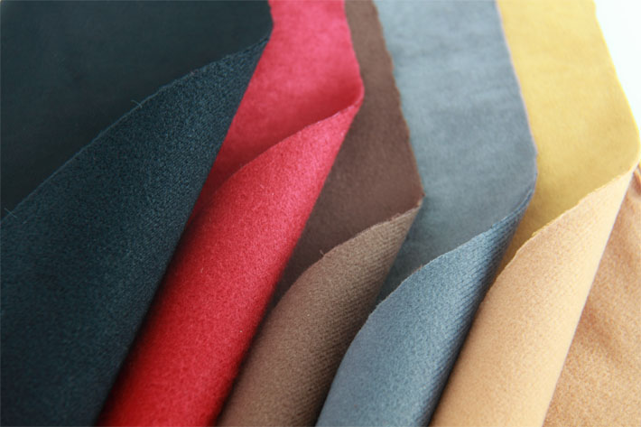 纬向五枚麂皮绒,绒毛短细腻,均匀紧致,轻斜纹效果,色牢度高,复合优质经编仿棉绒,舒适保暖,耐磨,具有天然动物皮毛效果,性价比较高,市面上很多豆豆鞋,长靴靴面都选用该面料。